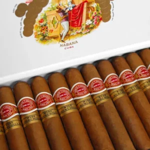The indigenous people of Cuba utilised tobacco leaves much like we do today in the creation of cigars. In the native tongue, ‘Cohiba’ is the name given to the tobacco plant’s leaves after they have been treated. The Cohiba Siglo VI Cigar itself is a Robusto Extra, crafted by the finest cigar rollers in Cuba and grown in first class fields. The wrapper is made from Corojo tobacco and the cigar’s strength is medium to full.